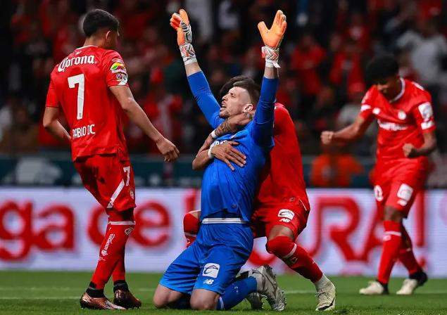 Ciudad de México, a 21 de febrero de 2024.-Con un gol de penal del portero Tiago Volpi, el Toluca rescató un triunfo por la mínima diferencia (1-0) ante Santos Laguna, que sigue sin ganar en el presente torneo Clausura 2024, en partido adelantado de la jornada nueve, disputado en el estadio Nemesio Diez.