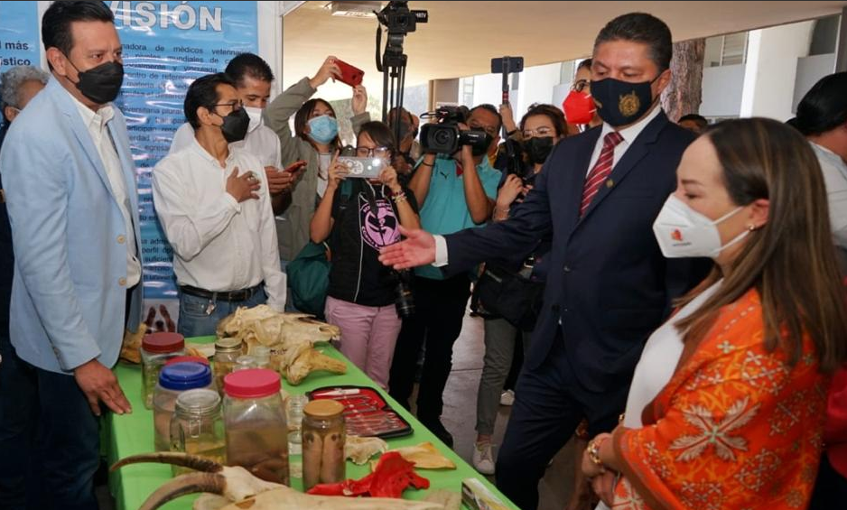Acompañado por la presidenta honoraria del Sistema DIF Michoacán, Grisel Tello Pimentel, la titular de la Oficina de Enlace Educativo en el Estado de Michoacán, Cynthia Mariana Sánchez Arias, la directora del Instituto de Ciencia, Tecnología e Innovación, Alejandra Ochoa Zarzosa, así como del Secretario Académico, Orépani García Rodríguez y de la Coordinadora de Proyectos Transversales y de Responsabilidad Institucional, Alma Rosa Ayala Virelas, el rector cortó el listón inaugural.